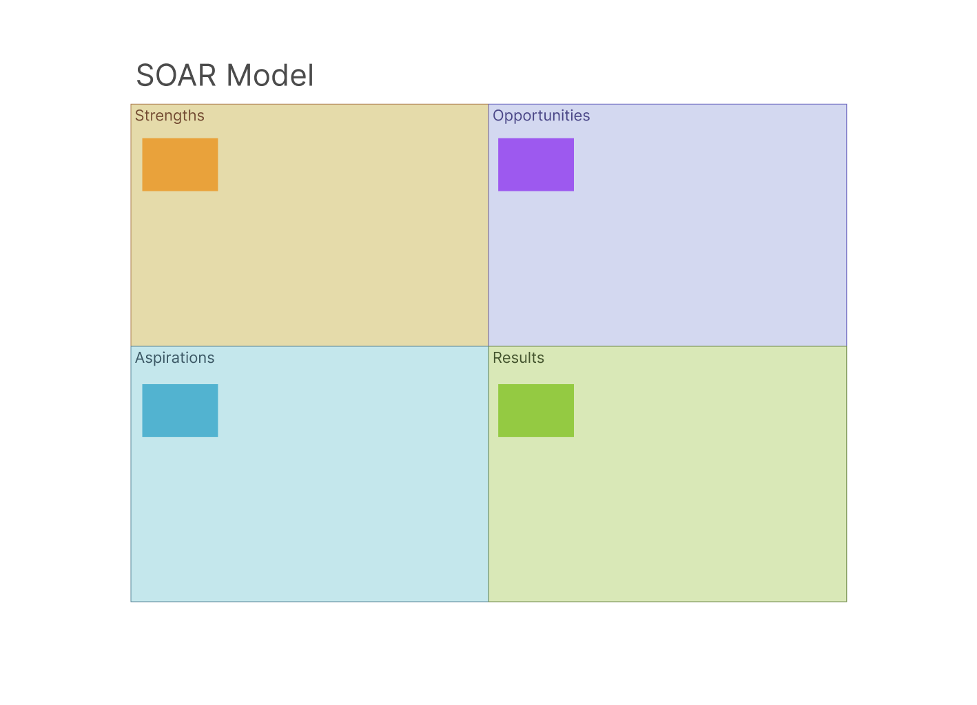 The template auto-populates a four-quadrant SOAR matrix with categorized insights. You’ll see key Strengths, Opportunities, Aspirations, and measurable Results distributed in the relevant sections, tailored to your input. Creately’s AI Visual Intelligence ensures content accuracy and layout clarity.